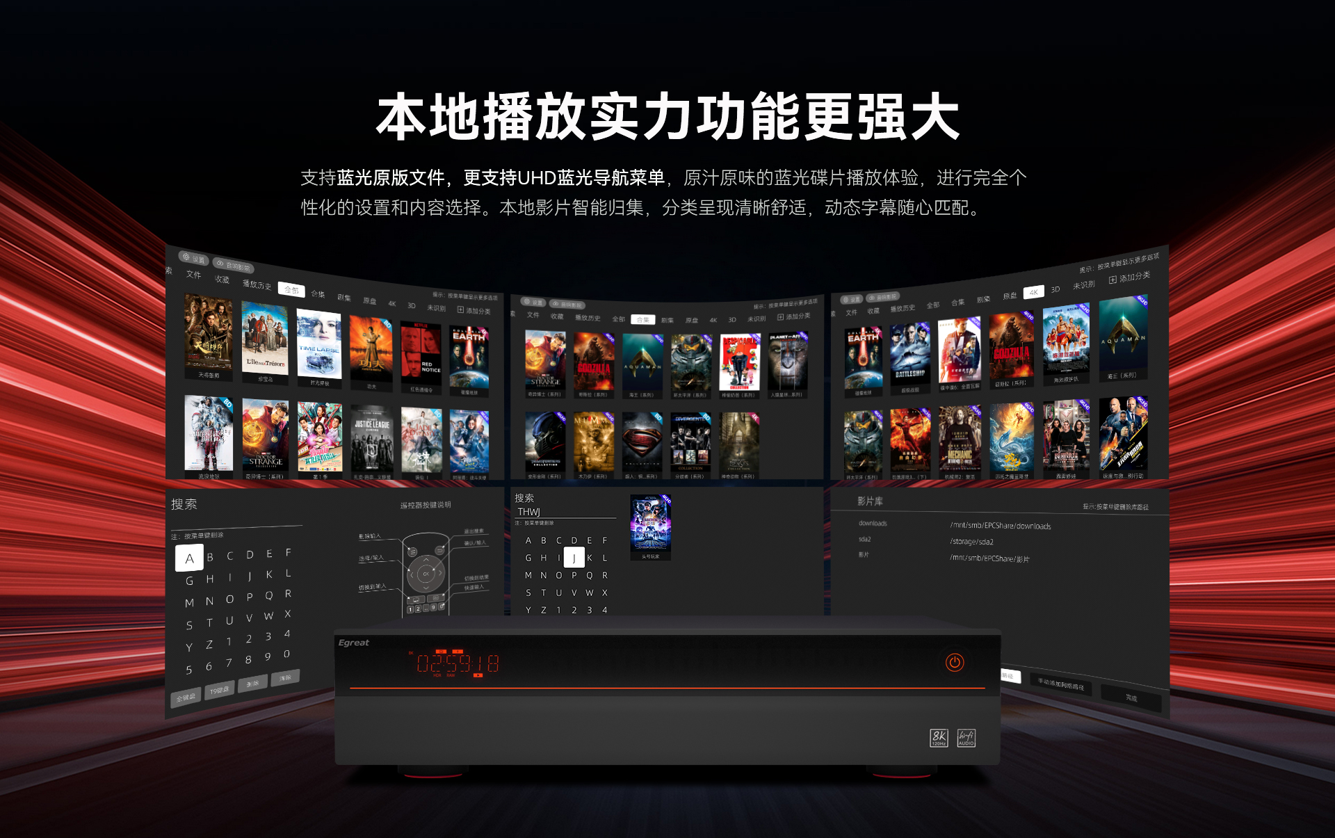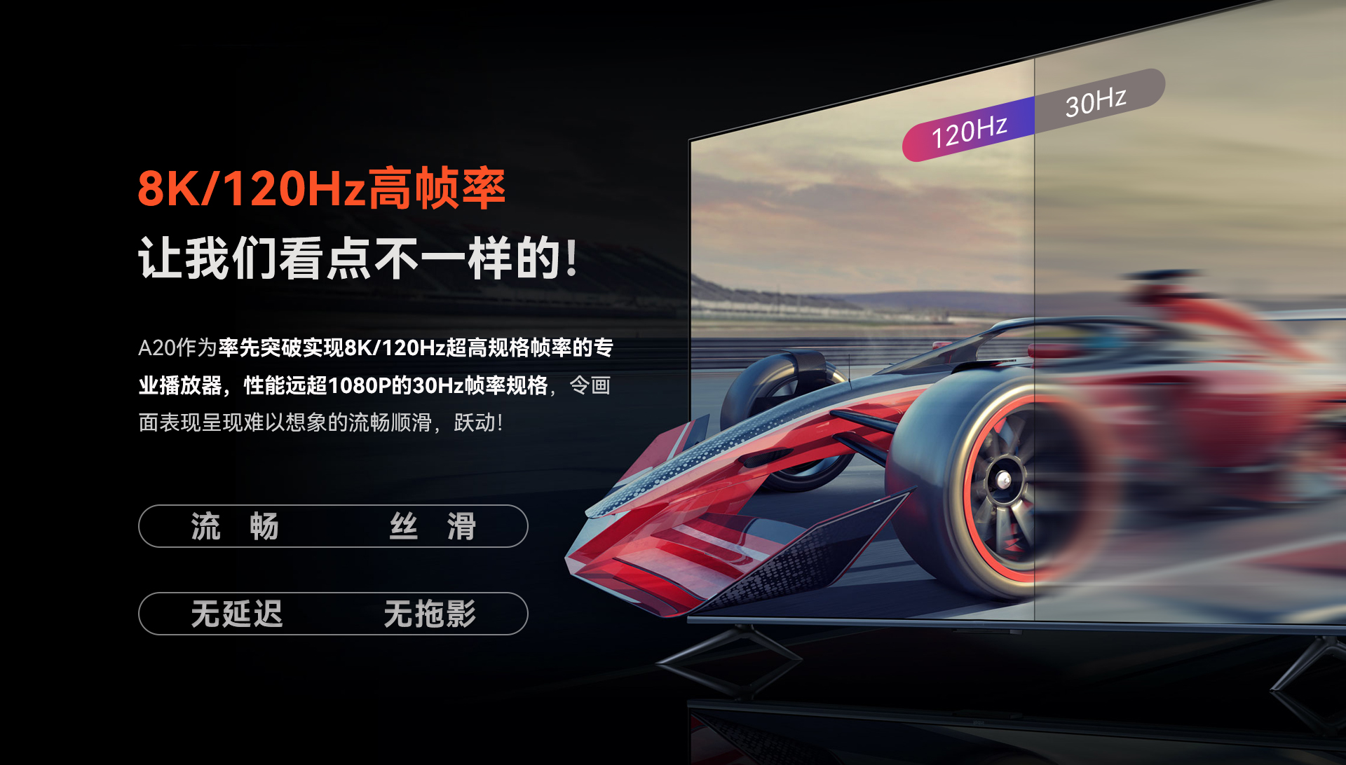 √ HD2.1输出,支持8K120Hz原画输出的超高清硬盘播放器;支持7680*4320的超高清画面输出,最高刷新率支持120Hz,同时支持HDR/HDR10/HLG模式;√ 内置ESS9038ProDAC芯片,信噪比(DNR):140dB,失真度(THD+N):-122dB,参数规格及听感优秀