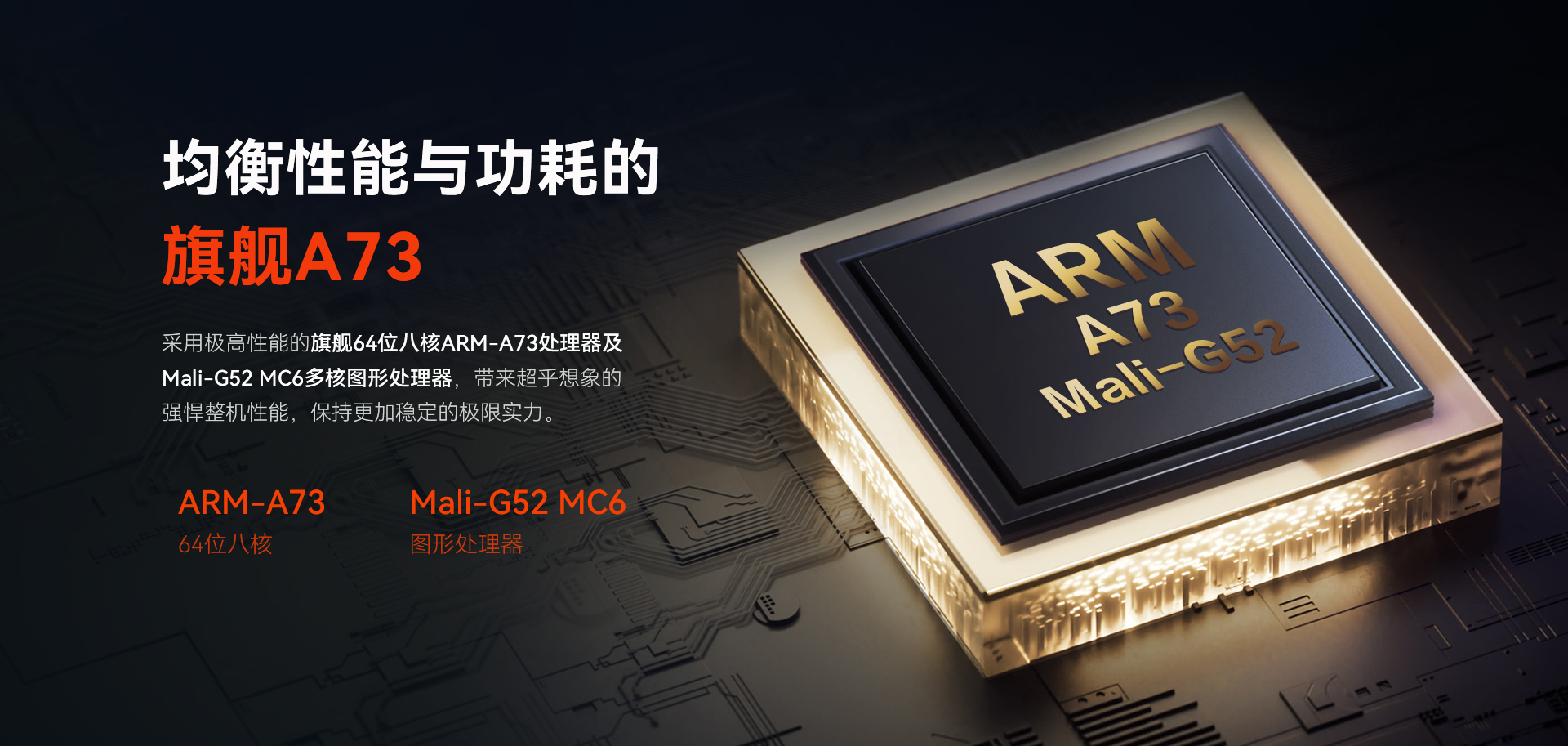 √ 八核ARM-A73极高性能CPU及多核G52 GPU ,12GB DDR4运行内存+128GB内部存储空间,带来超乎想象的整机性能和视频表现;